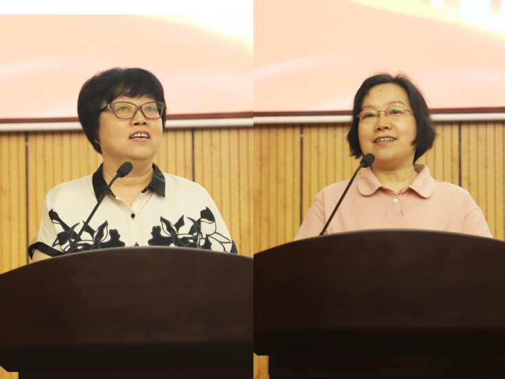荣休教师代表翟红侠老师分享自己的退休感言,她声情并茂,道出了对学校的难舍之情,也提出了对学校未来的期待和憧憬。胡蓉老师分享自己的退休感言,她饱含深情,娓娓道来。让参会人员深深感受到她们在长期教育工作中的踏实勤恳、敬业无私。