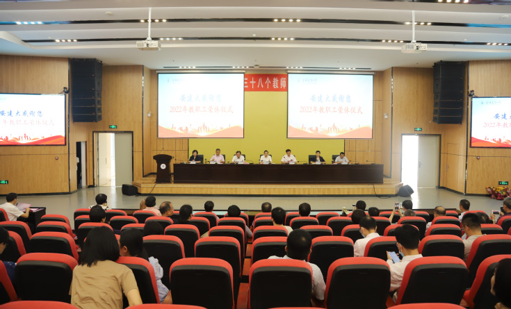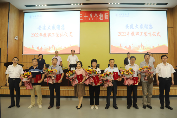 本网讯 9月9日,学校在南校区实验综合楼二楼报告厅隆重召开教职工荣休仪式。校领导孙道胜、黄显怀、蔡新立、王玉兰、闵杰、蔡国军、李早出席大会,全体处级干部,2022年荣休教师、新进教职工,师德标兵、优秀教师、优秀教育工作者等教师代表参加会议。会议由党委副书记、校长黄显怀主持。