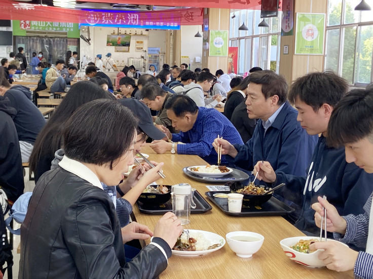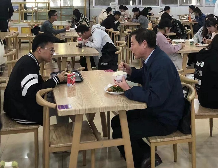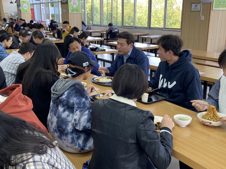 随后,黄显怀和环能学院创新创业、模拟联合国等协会负责同学一起排队取餐,在温馨融洽的氛围中和同学们共进午餐。黄显怀询问了同学们关于学习、生活、专业培养和社团活动等方面的情况,倾听学生们的困惑与问题,并就学校疫情防控各项措施向学生们进行了耐心讲解。同学们积极大胆地说出自己的想法,和校长亲切交谈。