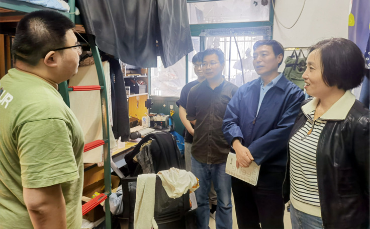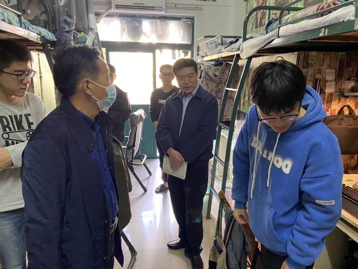 午餐后,黄显怀来到环能学院学生宿舍,查看学生住宿环境,了解他们在生活上的难题和思想动态,鼓励学生多与老师沟通交流,有问题主动寻求老师的帮助。