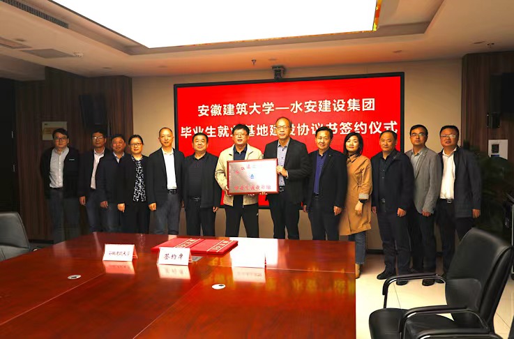 本网讯 10月12日,就业工作处、校友工作处以及土木学院、环能学院、经管学院、材化学院负责人赴安徽水安建设集团走访调研,并举行ku游官方毕业生就业基地签约暨揭牌仪式。安徽水安建设集团党委书记、董事长薛松,集团党委副书记、董事、总经理黄友保等公司领导出席签约仪式。