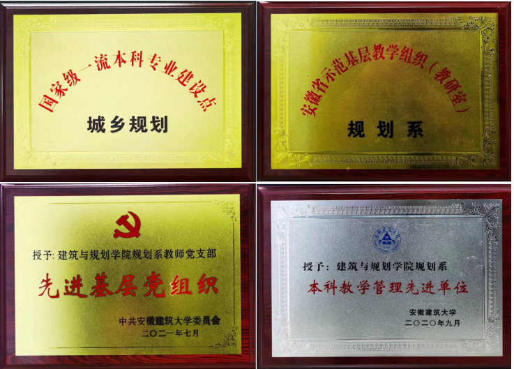 在党建引领下,城乡规划学科专业的发展取得了良好成绩。全国高等学校第四轮学科评估中,城乡规划学科取得B-等级,在全国学科排名进入前20名。2019年以来,城乡规划学科荣获安徽省高峰学科、城乡规划专业获批国家一流专业建设点、城乡规划专业硕士评估获优秀等级,规划系获安徽省示范基层教学组织。