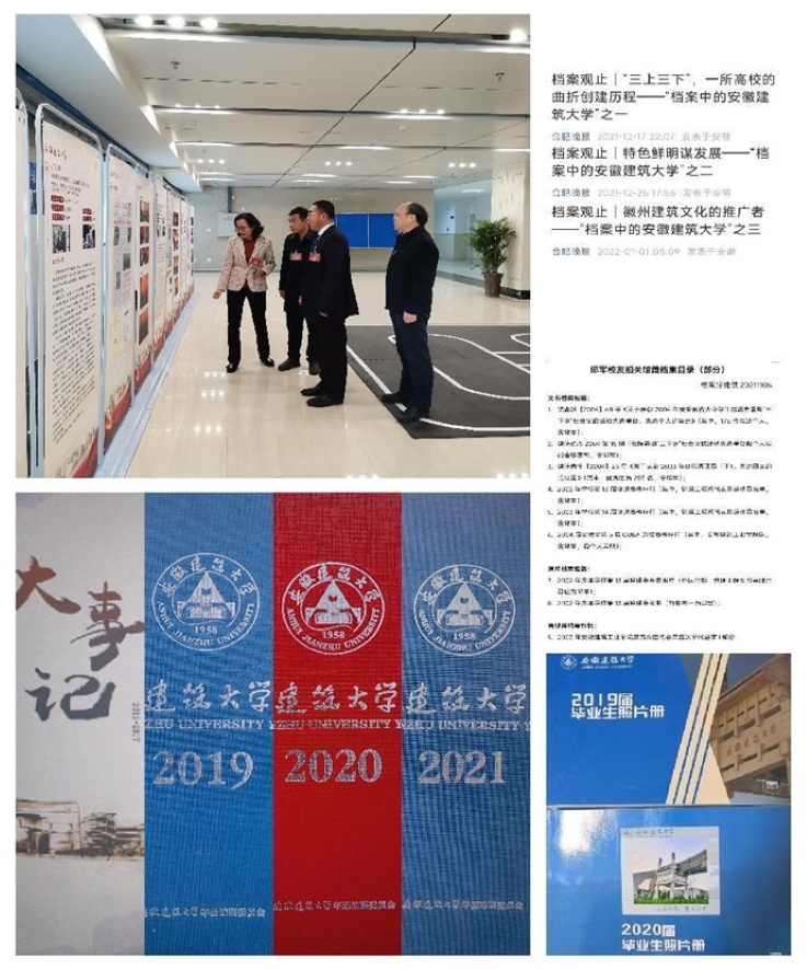 学校第二次党代会前夕,通过校报、公众号、网站、会场展板等多种形式,开展“档案中的党代会”专题宣传,取得良好效果。组织全馆围绕“时代楷模”邱军校友在校生活轨迹,汇集其学习、担任学生干部、入党、参加文体活动等方面的纸质、图片、音视频档案记录,勾勒出其较为完整的求学生涯和积极奋进的人物形象,为中化集团筹办邱军同志光荣事迹展览提供宝贵的原始档案。为合肥晚报社汇集、提供体现学校办学特点、服务地方经济社会发展所做贡献的相关档案,推送档案观止栏目3期,“三上三下”专辑获得称赞。多次赴汤池村开展“我为群众办实事”实践活动,征集驻村扶贫工作队专题档案,对村级档案管理进行辅导;开展“国际档案日”系列宣传活动,组织全校专兼职档案员参加新档案法宣讲会,参观“安徽记忆——馆藏档案珍品展”、“百年恰是风华正茂”主题档案文献展。守牢安全保密底线,强化档案保管保护,编纂学校年鉴、大事记,供稿安徽年鉴。