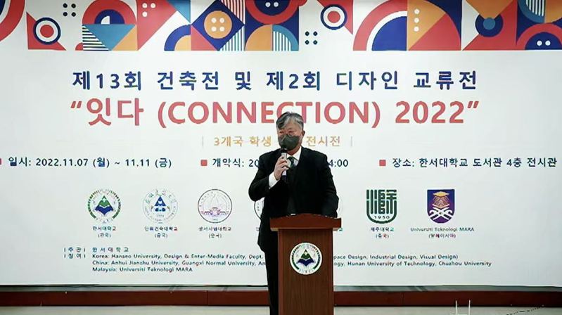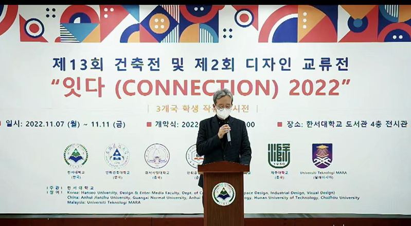 本网讯 由韩国韩瑞大学举办、我校协办的第十三届大学生国际建筑设计作品展及第二届设计交流展,于11月7日在韩国韩瑞大学举行开幕式,韩瑞大学副校长金镇宇博士、艺术学部部长魏光哲教授、我校建筑与规划学院副院长顾康康教授分别在开幕式上致辞,我校建筑与规划学院、艺术学院的15份学生作品(建筑学5份、室内设计5份、视觉传达5份)在韩瑞大学展览馆展出。