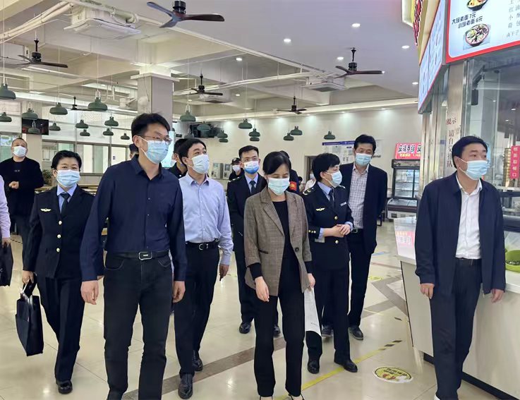 本网讯 11月10日,合肥市政府副市长赵明带队到我校南校区督查食堂安全管理体系、常态化疫情防控、应急处置等工作,市场监督管理局主要负责同志、相关处室负责人及经开区市场局负责人等陪同。校党委常委、副校长张亚新现场接待赵明,国资处、保卫处、后勤服务集团等部门负责人陪同。