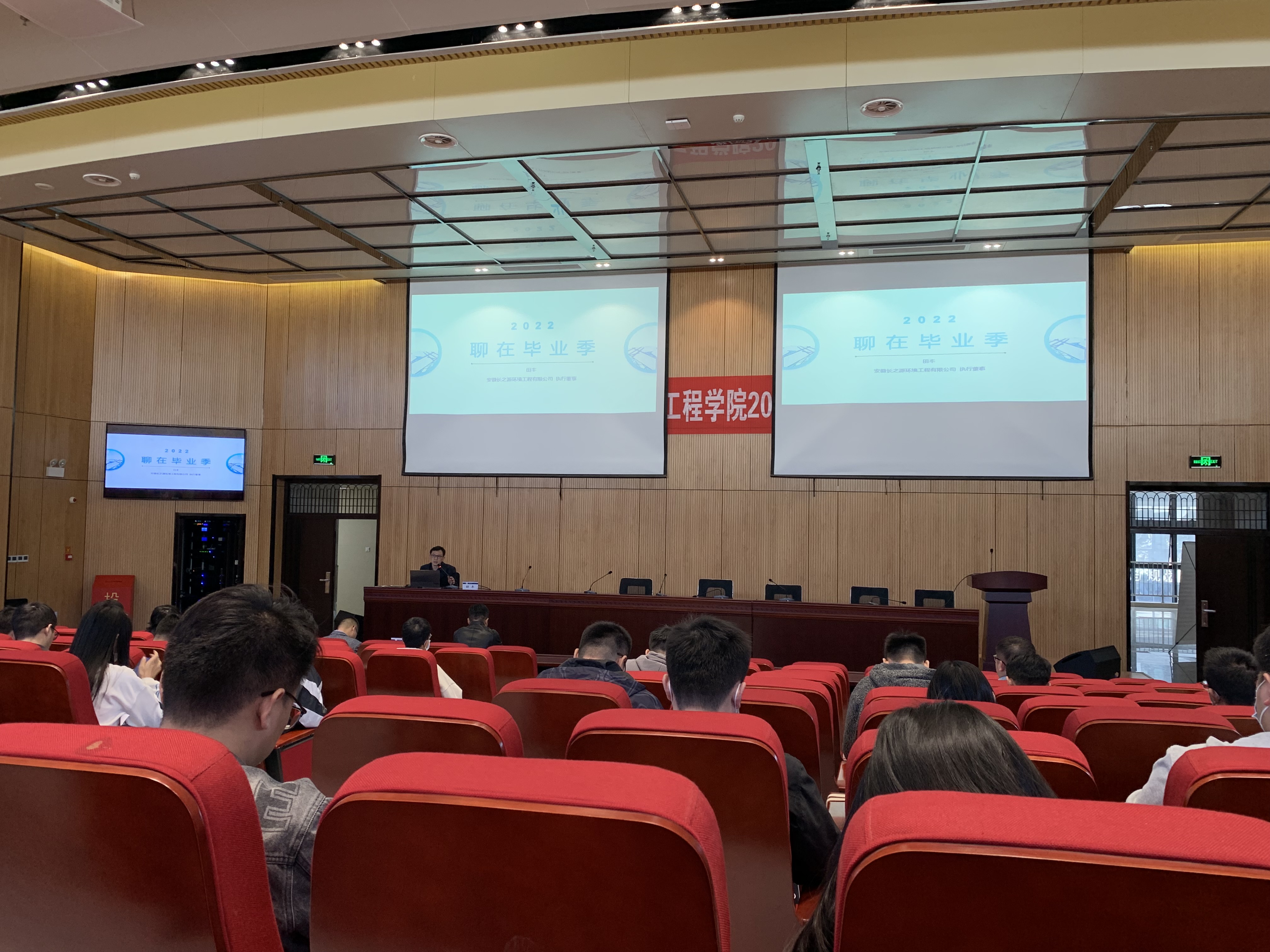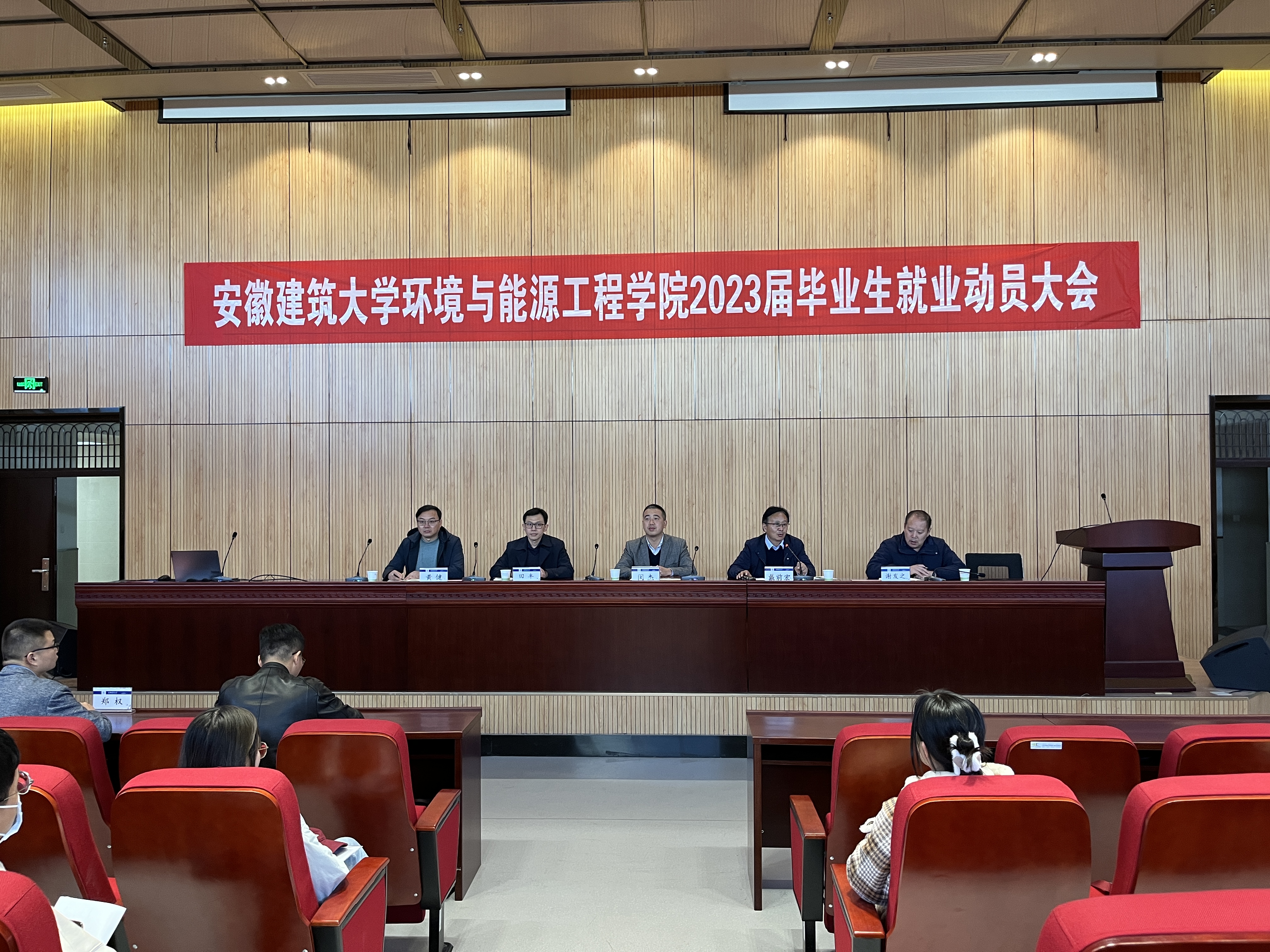 本网讯 11月15日下午,环境与能源工程学院在实训综合楼二楼报告厅召开2023届毕业生就业动员大会。校党委常委、副校长闵杰、安徽长之源环境工程有限公司执行董事田丰、环能学院领导班子出席会议,安徽长之源环境工程有限公司代表、环能学院各系主任、辅导员、2023届毕业生参加会议,会议由环能学院党委书记戴前宏主持。