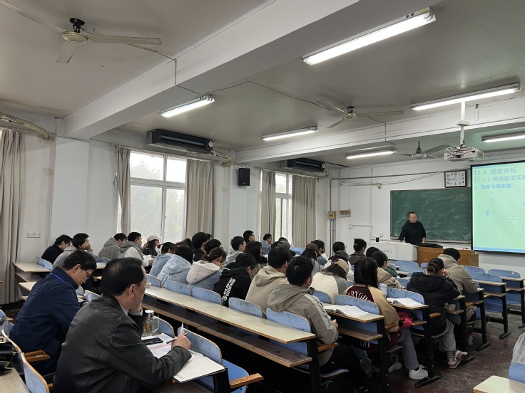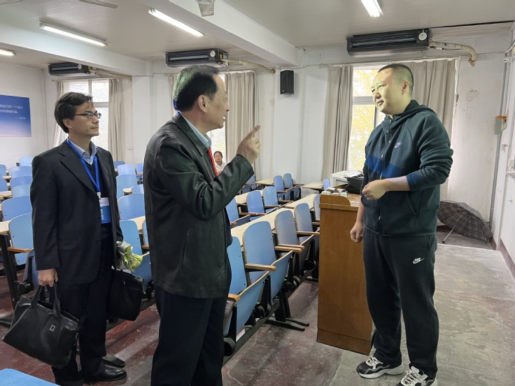 蔡新立首先走进课堂,听取青年教师讲课,他细心观察学生课堂反应,认真记录听课情况。课后,蔡新立就上课情况与授课老师进行交流,对授课情况予以肯定,并就进一步优化教学内容、改进教学方法、促进师生互动等方面提出意见和建议。