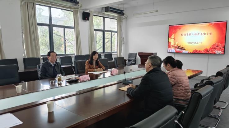 本网讯 11月17日,校党委常委、副校长蔡新立深入经管学院经济学系教师党支部联系点调研指导工作。学校后勤集团、科技成果转化中心、科技处等部门领导和经管学院领导班子成员陪同调研。