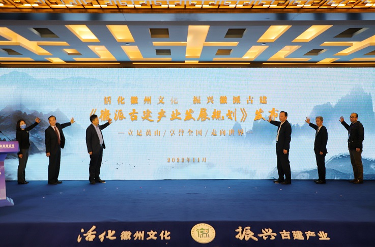 在下午的“活化徽州文化,振兴古建产业”的徽派古建产业发展论坛上,省住房和城乡建设厅党组成员、副厅长方廷勇和蔡新立等共同为我校编制的《徽派古建产业发展规划》做现场发布。