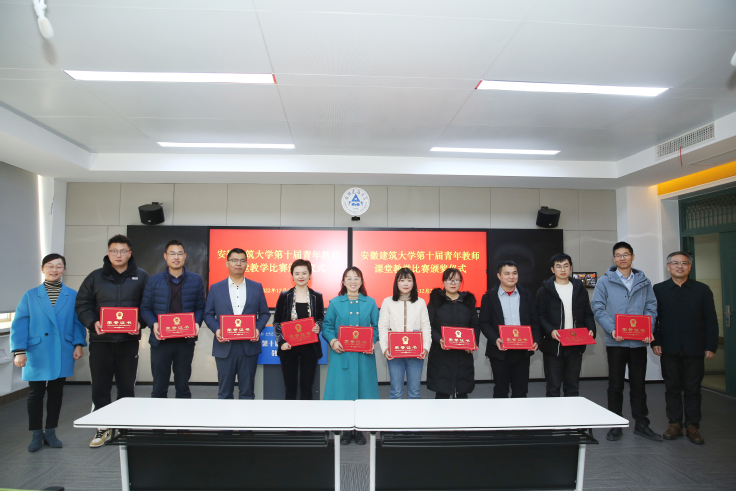 本网讯 为进一步发挥青年教师课堂教学比赛在改进教学方式方法、学习教育教学理念和提高课堂教学质量,以及深耕智慧教学改革和提升教师教学能力等方面的平台作用,近日,学校第十届青年教师课堂教学比赛决赛在南校区教学主楼6楼智慧教室落下帷幕。3名教师获一等奖、6名教师获二等奖、10名教师获三等奖、11名教师获优秀奖。土木工程学院、数理学院、公共管理学院获得优秀组织奖。校领导闵杰、张亚新、李早,校工会主席胡雯及教师发展中心主任段宗志给获奖教师颁发荣誉证书。