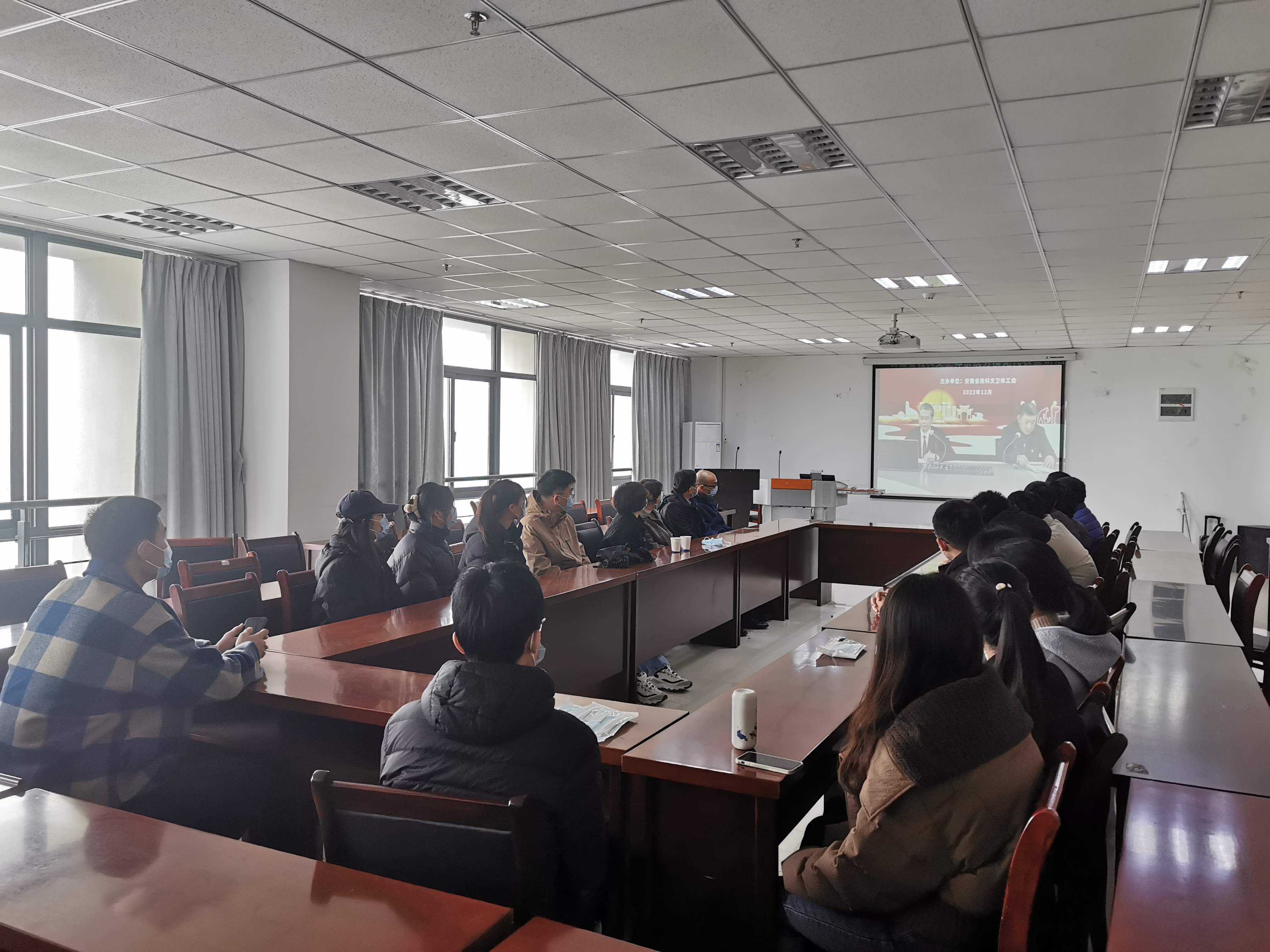 本网讯 为深入学习宣传贯彻党的二十大精神,推动大会精神走进基层一线和职工群众,近日,省教科文卫体工会以线上直播形式开展全系统学习贯彻党的二十大精神宣讲活动。党的二十大代表、安徽师范大学路丙辉教授受邀作专题报告,省教科文卫体工会主席吴海明主持宣讲。本次宣讲活动共吸引近30万人次在线观看。我校各分工会分别组织了收看。