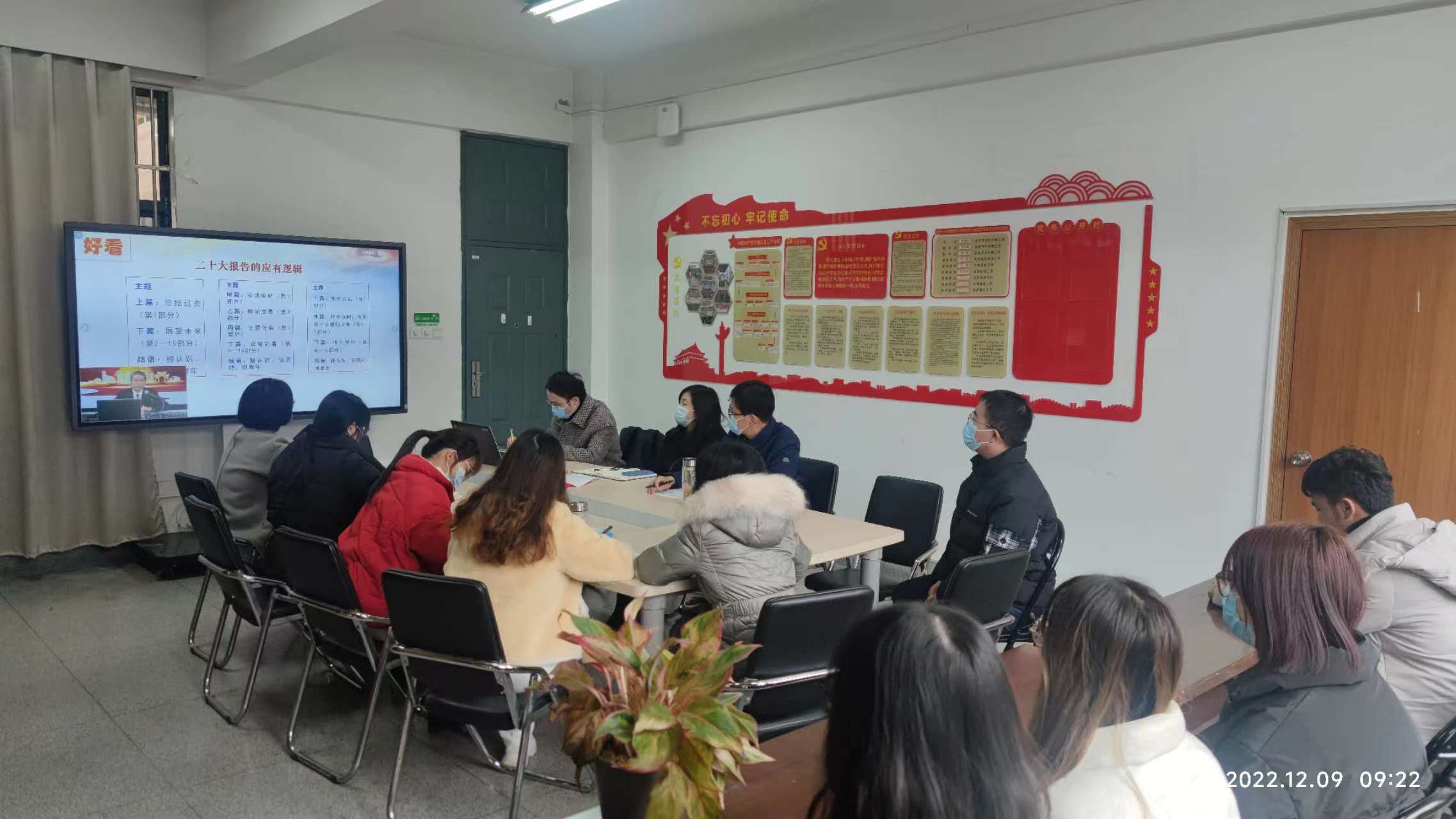 路丙辉教授结合自身参会感受和学习心得,从“好听”“好看”“好学”三方面深度解读了党的二十大报告。他指出,党的二十大报告总结实、理论新、擘画全,思想深邃、凝聚人心、催人奋进,要从整体把握、重点突出和联系实际这三个维度,全面系统学习、深刻领会把握、深入贯彻落实党的二十大精神。宣讲报告主题鲜明、内涵丰富、精彩生动,具有很强的针对性和指导性。