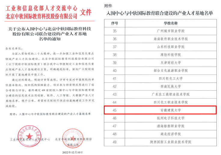 电子与信息工程学院(特色示范性软件学院)与北京中软国际教育科技股份有限公司联合申报信息技术应用创新和软件领域产业人才基地。经过材料审查、现场答辩评审等流程,评审专家对申报院校的单位基本情况、组织机构保障能力、项目参与师资情况等进行了综合考核与评估,最终确定了杭州电子科技大学、西南大学、北京工商大学、ku游官方等49所高校入围。
