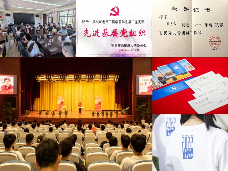 特色党课入人心。举办“中国好人”张景兰走进ku游官方活动,线上线下千余人同步直播,在感召中领悟“奉献”的真谛,成立“张奶奶爱心团队”,在行动中强化使命担当。主题教育更走心。围绕“多措并举提素养 齐抓共管增能力”举办主题教育活动70余次。开展毕业季特色活动,精心设计专属纪念卡册、机电学院文化衫,寄托着母校的殷切期望。社会实践增信心。组织师生参观“全国双创周”、世界制造业大会,激发学生对于科技和创新的热情。2022年,暑期社会实践“皖燕护巢”获安徽省优秀团队,团队成员受中国青年报采访。学生第二党支部获校“先进基层党组织”,1名学生荣获“安徽省优秀共青团员”称号,2名学生荣获校“优秀共产党员”称号。