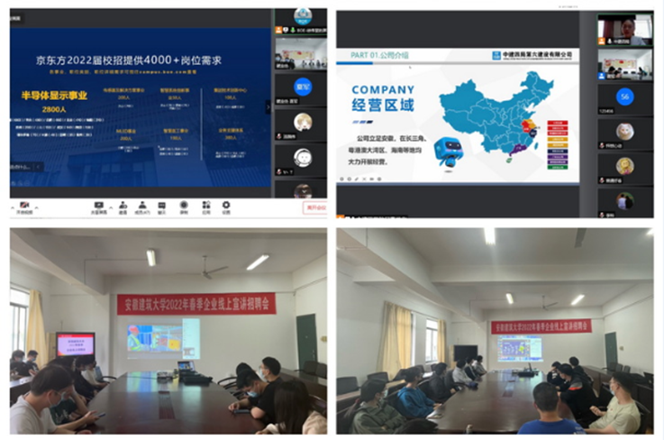 构建“线上+线下”多维度就业市场体系,对毕业生求职意愿强烈的用人单位进行重点摸排,增强与用人单位供需对接实效,建设、打造一批区域性、行业性大学生就业市场。通过资源对接、积极互访、签署协议,进一步拓宽就业渠道,提升学校的美誉度。对接安徽省大中专就业指导中心,举办安徽省建筑类毕业生就业市场,联合合肥市人社局,合肥市经开区、包河区、高新区、蜀山区、新站区,肥西县,池州市青阳县等地区及行业协会举办综合性招聘会;强化线上就业市场建设,通过就业信息网、“毕业生QQ群”、微信公众号等平台发布就业信息2500余条;积极开展网络招聘服务,鼓励用人单位通过空中招聘会、线上宣讲、远程面试、网上签约等开展校园招聘,促进线上线下招聘相结合,提高招聘成功率。