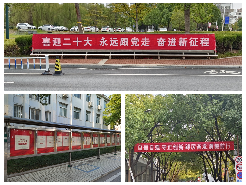 全力营造迎接、宣传、贯彻党的二十大浓厚氛围。校园网开设“建大这五年”“建功新时代”专栏,制作灯杆展示架展示旗40余幅,专题宣传栏、海报、横幅等。组织广大干部师生通过电视、网络、手机客户端等形式收听收看党的二十大开幕盛况,制定学校《学习宣传贯彻党的二十大精神的总体方案和任务清单》《学习贯彻党的二十大精神宣讲方案》等,认真学习宣传贯彻党的十九大及十九届历次全会和党的二十大精神;组建学校党的二十大精神师生宣讲团,采取集中宣讲和分散宣讲相结合的方式,实现校内理论宣讲常态化和基层党委(党总支)宣讲全覆盖。