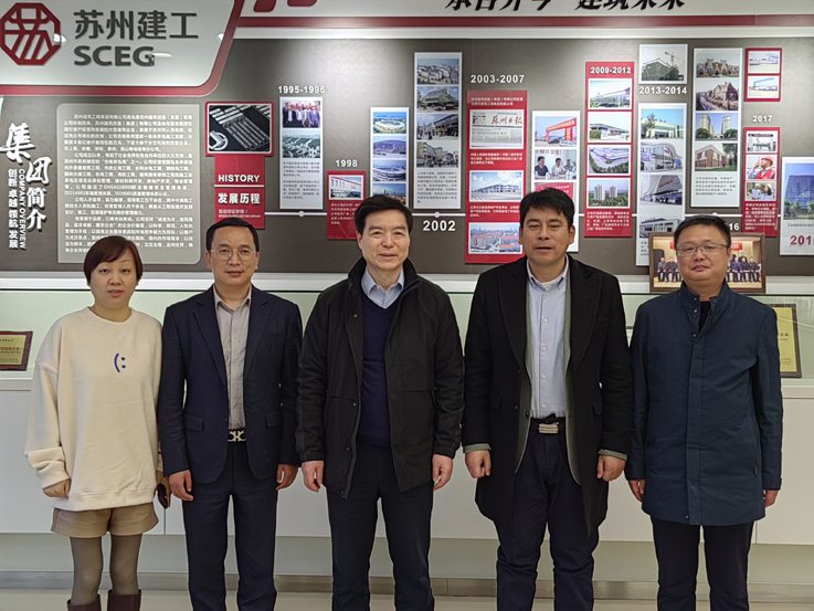 校党委副书记、校长与苏州建筑工程集团有限公司董事长刘贤鹏和苏州工业园区智宏工程管理咨询有限公司董事程晋学座谈