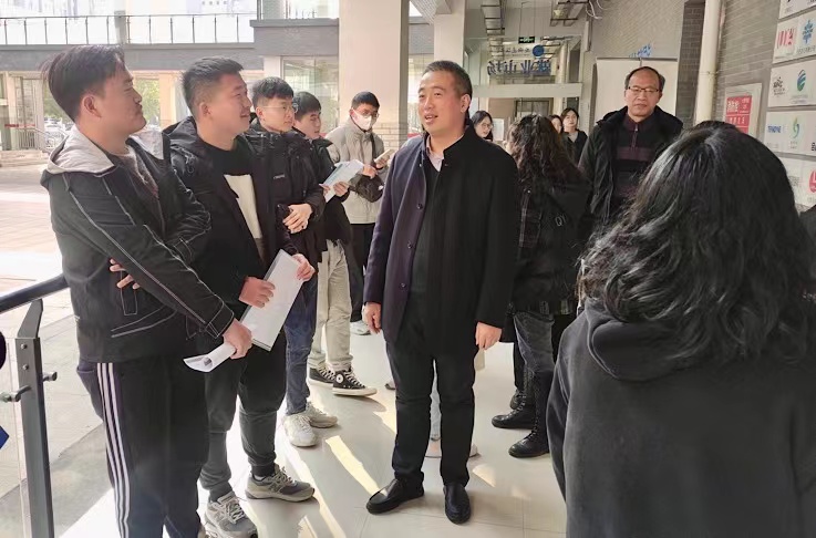 本网讯 律回春晖渐,万象始更新。2月20日,中国铁建港航局集团、中建五局二公司在我校逸夫楼就业市场举办2023年线下招聘会,这是学校就业招聘场所正式搬迁至逸夫楼后举办的首场线下招聘会,招聘会现场吸引了大量毕业生前来应聘,实现春季招聘开门红。校领导高度重视,校党委常委、副校长闵杰实地指导就业招聘工作,并与用人单位和毕业生亲切交谈,希望用人单位支持学校就业工作,在招聘大土建专业毕业生的同时储备非土建专业人才,希望广大毕业生珍惜机会、精心准备,尽早实现就业。
