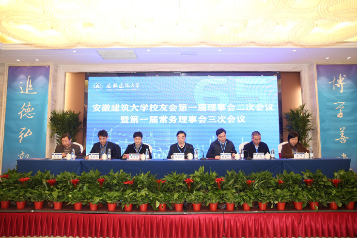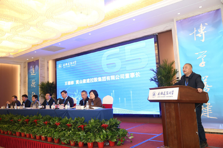 徽建控股集团有限公司董事长、黄山校友会会长王德修,安庆市住房保障管理服务中心主任、安庆校友会会长慈朝晖,广州市南花涂料科技有限公司总经理、广东校友会名誉会长丁保南,上海家露电器董事长、上海校友会秘书长董禄,苏州工业园区智宏咨询管理有限公司董事、苏州校友会秘书长程晋学作为理事代表,逐一上台发言,感恩母校的培养,为母校快速发展和取得丰硕成绩感到自豪,建议加强校企合作,为校友企业培训输送人才,他们表示会后将在各地校友会和校友中传达宣传本次会议精神和学校65周年校庆倡议,积极动员各地校友会和校友参与校庆活动和公益捐赠,尽力支持母校发展,为母校65周年华诞添彩!