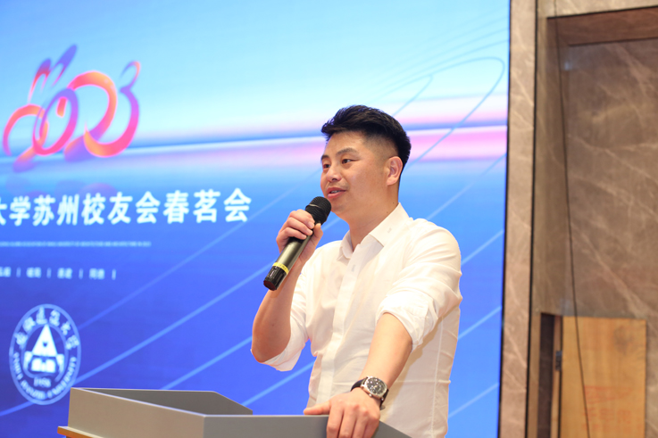 苏州校友会秘书长程晋学代表苏州校友会对学校领导、兄弟校友会代表和苏州校友抽空参加春茗会暨ku游官方建校六十五周年庆祝活动,表示热烈欢迎!他从组织建设、团结凝聚校友、校友活动开展、组织校友支持母校建设等方面介绍过去五年苏州校友工作开展情况和取得的成绩。感谢学校领导和校友会关心支持和指导,苏州校友会将积极落实学校校友会理事会精神,配合学校做好校庆工作,组织苏州校友回馈支持母校建设发展,祝母校六十五周年生日快乐!
