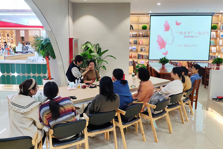 由校工会主办,机电学院协办的“个人美妆私享课”在南区善建书坊举行,参加的女教工学习用最简单的工具和产品完成“快手日常妆”的方法,共同见证了美妆带来的“美丽蜕变”。