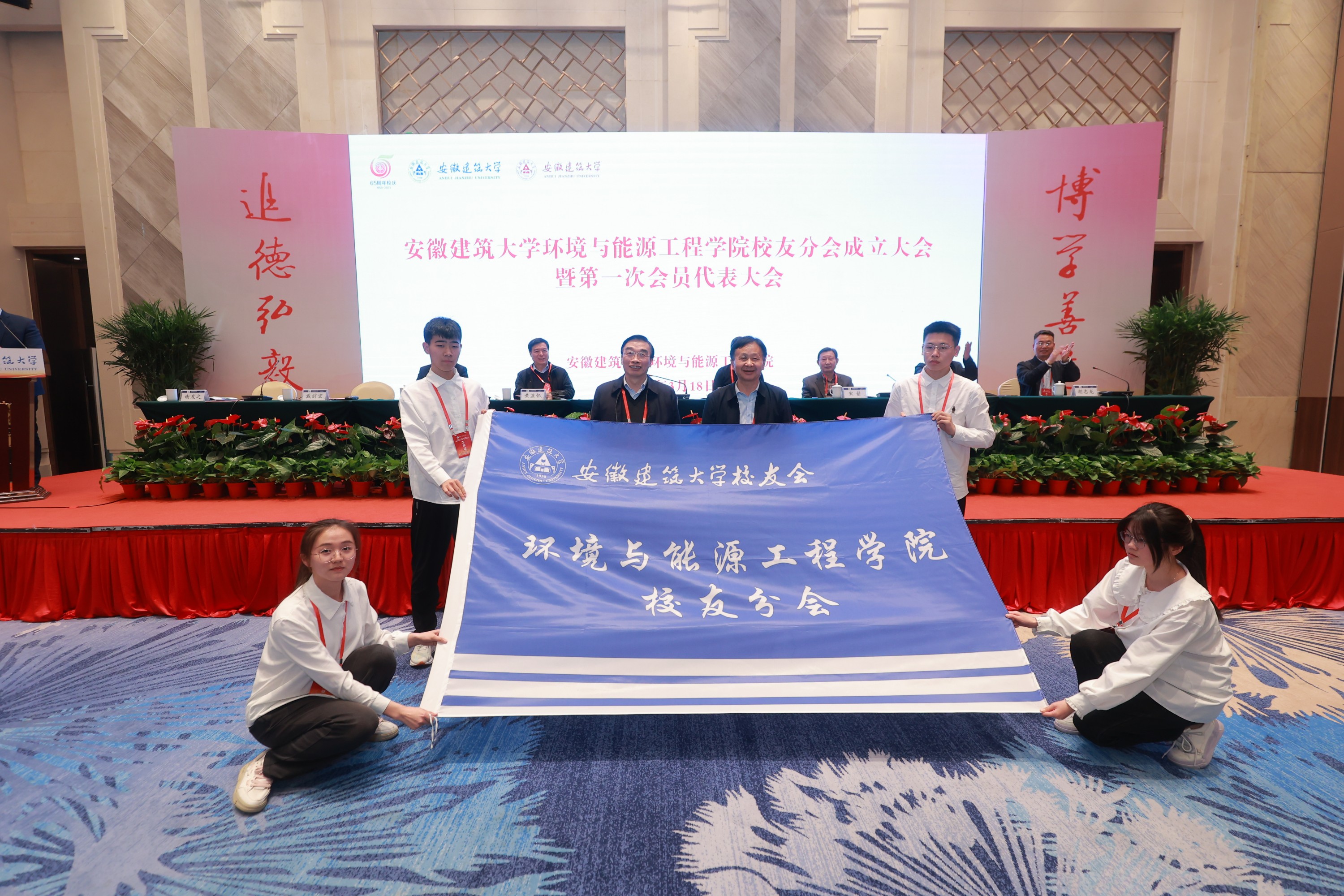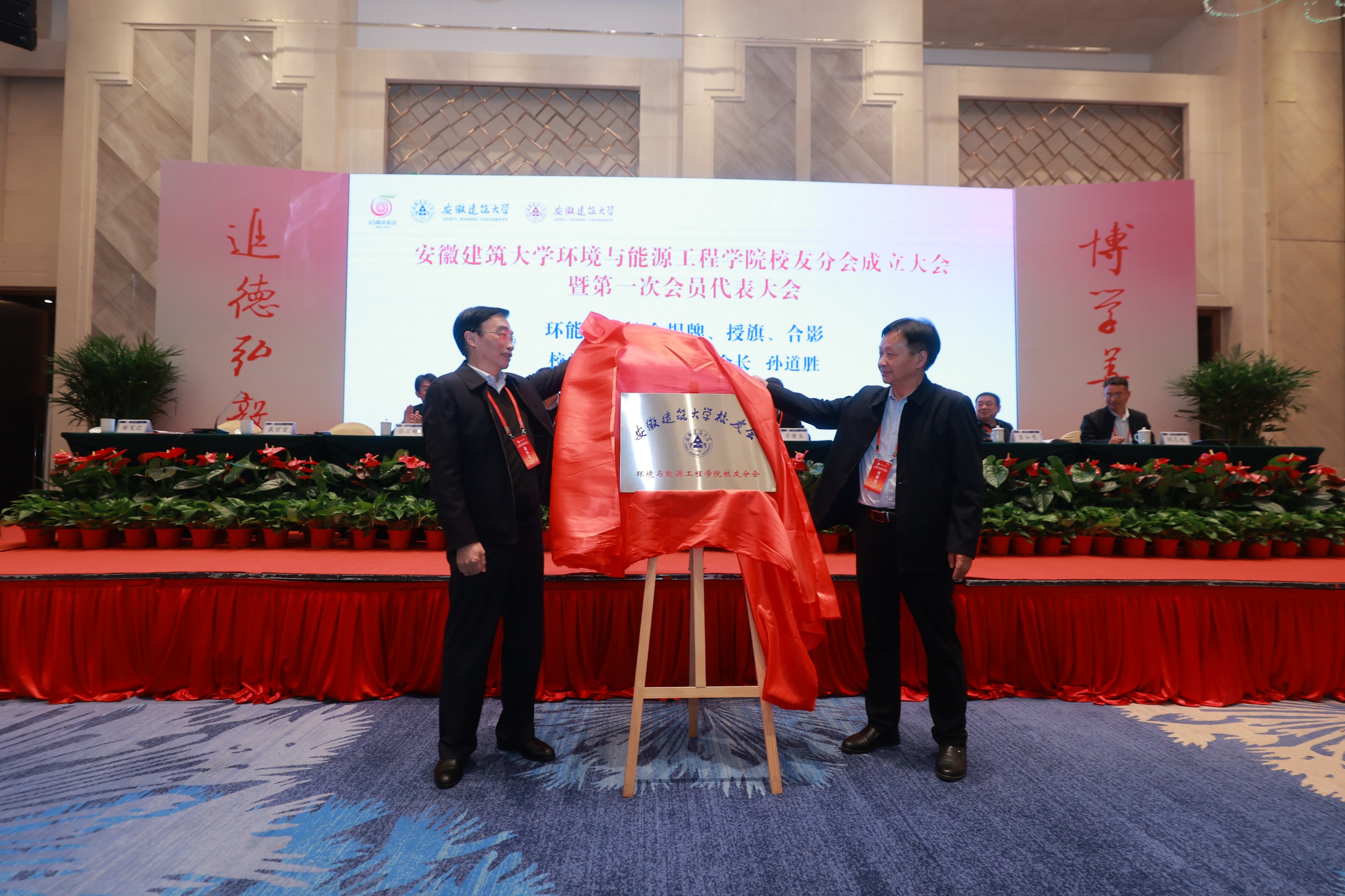 校党委书记、校友会会长孙道胜和学院党委书记、校友分会会长戴前宏共同为环能学院校友分会揭牌,孙道胜为环能学院校友分会授旗。校友分会会长、副会长、秘书长上台合影留念。