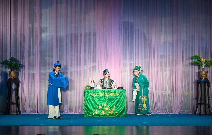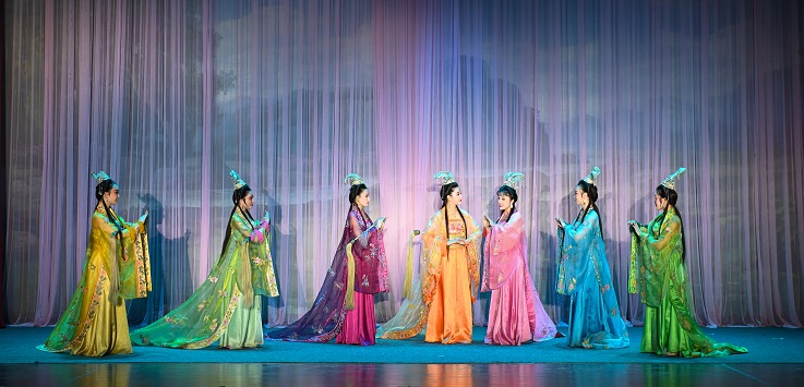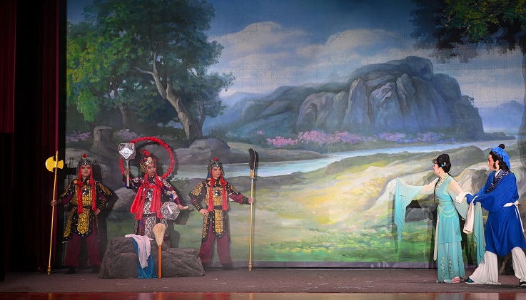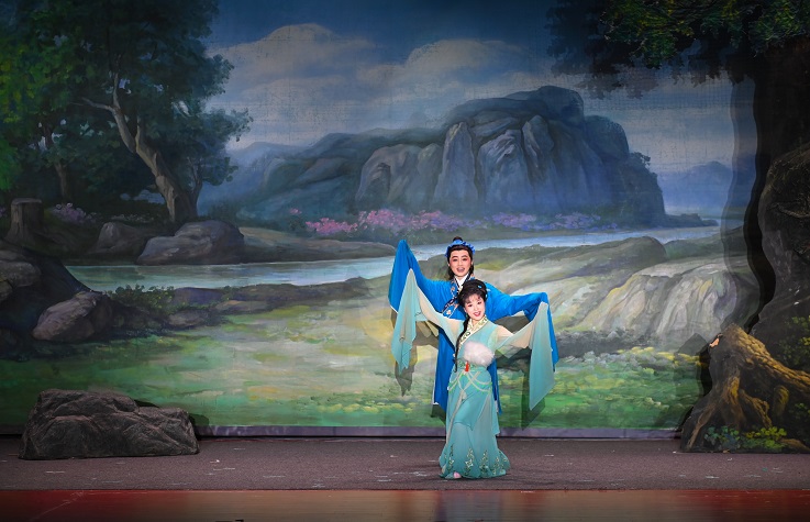 在观众们热烈的掌声中,黄梅戏早期积累的“三十六大本”之一、黄梅戏的保留剧目之一——《天仙配》演出拉开帷幕,晕染清秀淡雅的妆容,以明快抒情见长的唱腔配合丰富的表情变化,让台下师生们耳目一新。演员们举手投足皆有意,一颦一笑总关情,体现出黄梅戏表演独特的艺术风格,塑造了一个个活灵活现的人物形象,让观众身临其境。演出现场,再芬剧院副院长李萍与校团委副书记万华互赠文创礼物,以示友好。