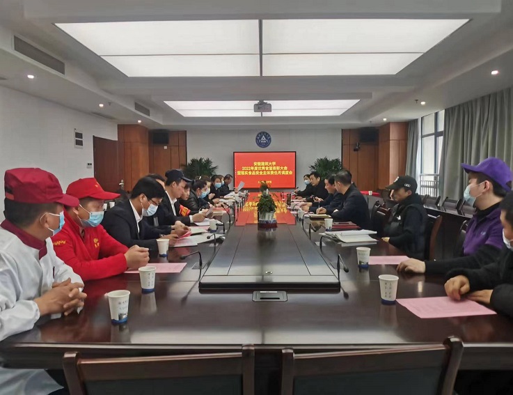 会上,后勤服务集团宣读2022年优秀食堂和文明食堂等荣誉的表彰决定,传达安徽省市场监督管理局、安徽省教育厅关于学校食堂贯彻落实《企业落实食品安全主体责任监督管理规定》的通知,并与各餐饮服务企业签订2023年安全工作稳定责任书。会议要求学校各食堂严格落实食品安全主体责任,对照文件要求,正视差距与不足,认真开展督察自查,梳理存在问题,抓紧整改落实。
