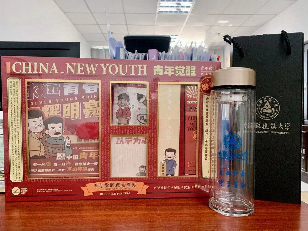 “爱心礼包”包含励志手账本与定制水杯,鼓励学生积极进取,乐观向上,同时不忘饮水思源,心怀感恩。