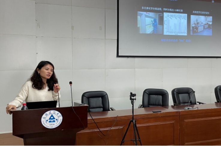 秦礼萍教授从月球的形成、大碰撞模型的提出、模拟与验证、人类探月计划、中国的嫦娥工程、月球样品分析等多个方面介绍月球科学的研究进展,深入浅出、生动精彩的讲解引出了师生的热烈讨论,新颖和独特的研究视角给大家带来了许多有益的启发。月球科学研究中的同位素分析在环境科学研究中也有诸多应用,成为解析环境污染物迁移转化的重要工具,与会师生均表示受益匪浅。