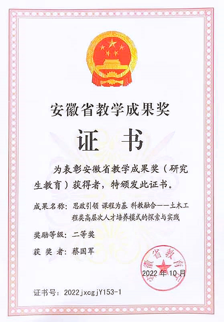 本网讯 近日,ku游官方作为第一完成单位,中国海洋大学和东南大学为共同完成单位的研究生教学成果——“思政引领 课程为基 科教融合——土木工程类高层次人才培养模式的探索与实践”荣获安徽省研究生教学成果二等奖。