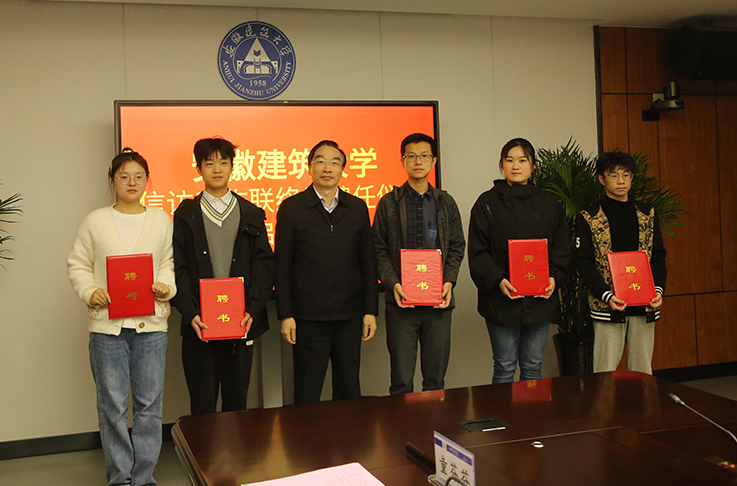 会上,孙道胜向信访工作周宇、李久林等教师联络员和臧子杰、韩久毅等学生联络员颁发了聘书。