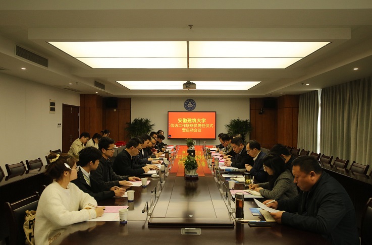 本网讯 3月31日,学校在南校区实验综合楼21楼第二会议室举行信访工作联络员聘任仪式暨启动会议,校党委书记孙道胜出席会议,办公室、学生处、人事处、国资处、保卫处、土木学院、图书馆主要负责人及信访工作师生联络员参加会议,会议由办公室主任马宾主持。