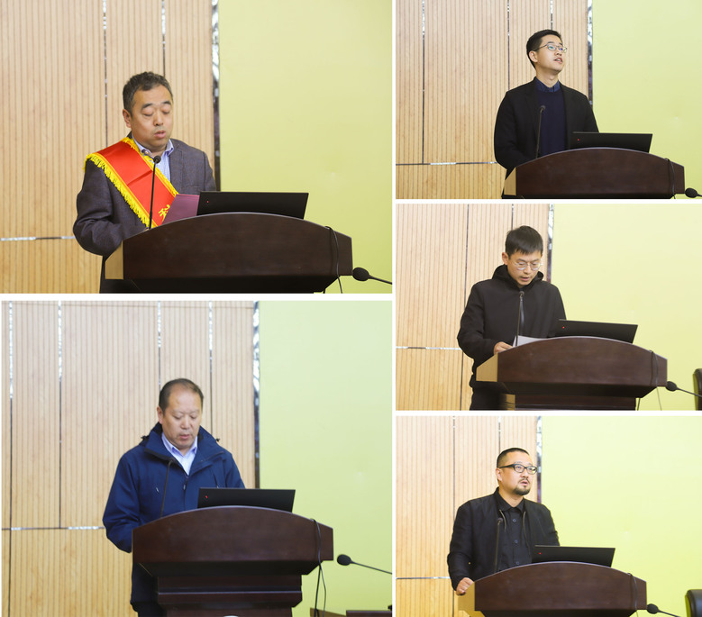 学院代表、材料与化学工程学院院长丁益、环境与能源工程学院院长谢发之;先进个人代表、公共管理学院教师蔡弘、土木工程学院教师余勇、艺术学院教师张乐分别发言,分享了科研工作的体会、经验与收获。