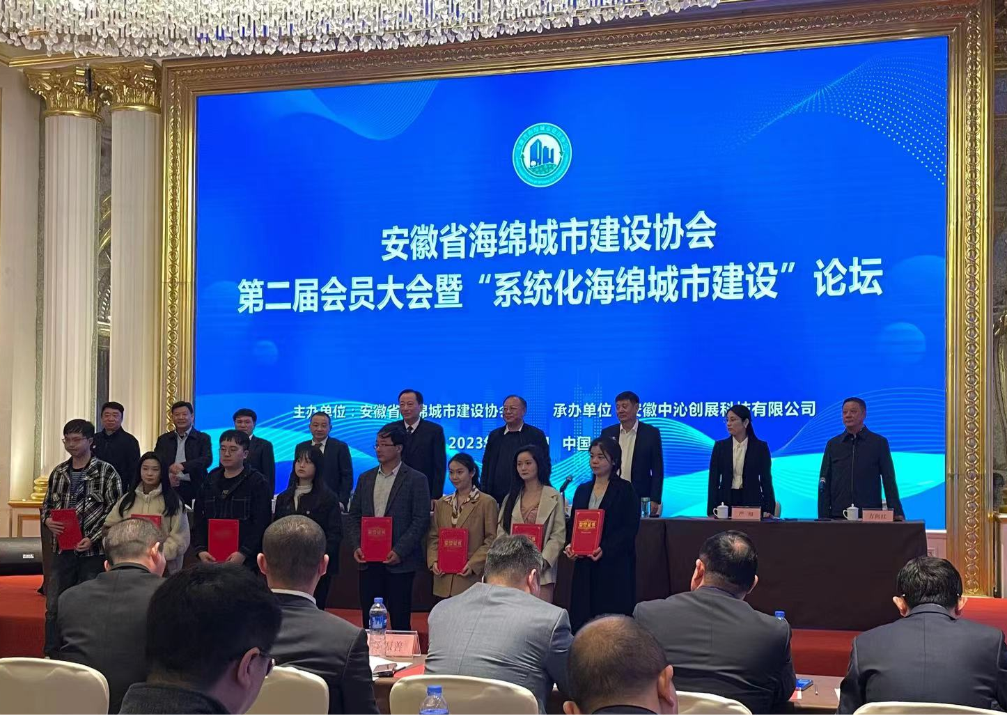 本网讯 近日,安徽省海绵城市建设协会(以下简称“省海绵城市协会”)第二届会员大会暨“系统化海绵城市建设论坛”在合肥召开,省住房城乡建设厅、省社会组织管理局领导到会指导,校党委常委、副校长、省海绵城市协会会长蔡新立主持会议。会议表彰了2022年度安徽省海绵城市建设优秀成果、优秀论文、优秀会员单位和先进协会工作者,并向获奖单位及个人现场颁发了获奖证书。