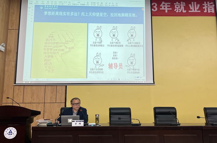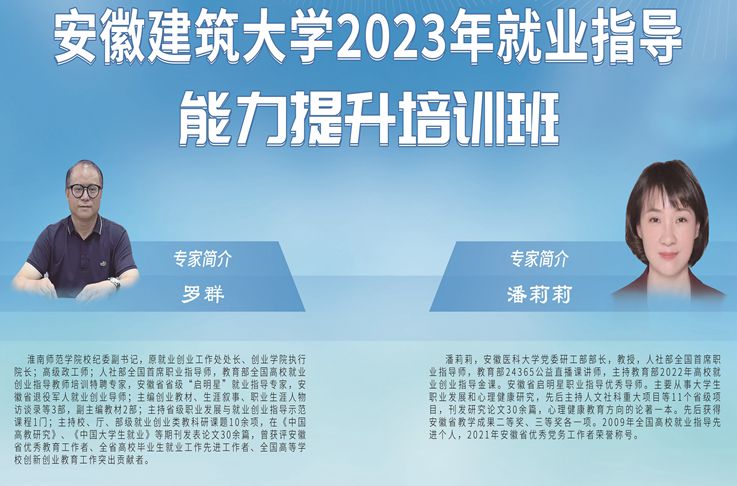 本网讯 为进一步推进就业指导专兼职人员队伍建设,提升就业指导能力水平,促进毕业生就业工作提质增效,4月14日,学校在实验综合楼报告厅举办2023年就业指导教师能力提升培训班。此次培训班邀请到人社部全国首席职业指导师、教育部就业指导专家、安徽省启明星就业指导专家潘莉莉、罗群老师来校授课。来自各学院分管学生工作负责人、就业联系人、全体专兼职辅导员及《大学生职业生涯规划与就业指导》课程授课教师参加此次培训。