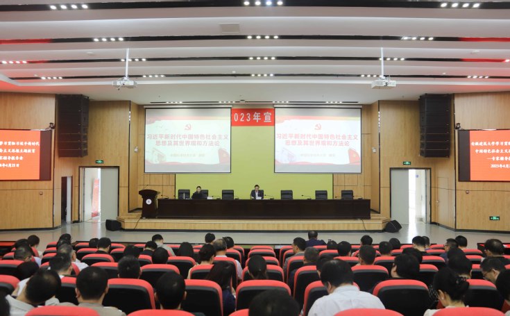 本网讯 为将学校学习贯彻习近平新时代中国特色社会主义思想主题教育推深走实,4月21日,学校邀请中国科学技术大学马克思主义学院教授魏荣作题为《习近平新时代中国特色社会主义思想及其世界观和方法论》的专题辅导报告。校党委书记孙道胜主持报告会,全体副处级以上干部参加。