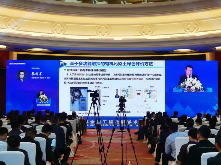 我校蔡国军教授以“工程地质原位测试新技术新方法”为题作大会特邀报告,系统阐述了原位测试技术在软弱土、海洋土和污染土三个方面上的应用及目前实验室在产品研发和运用上取得的成就,并致力于将原位测试技术更好地与“深海”、“深地”、“深空”及“深蓝”四方面的结合,促进科技与探测的广泛应用。