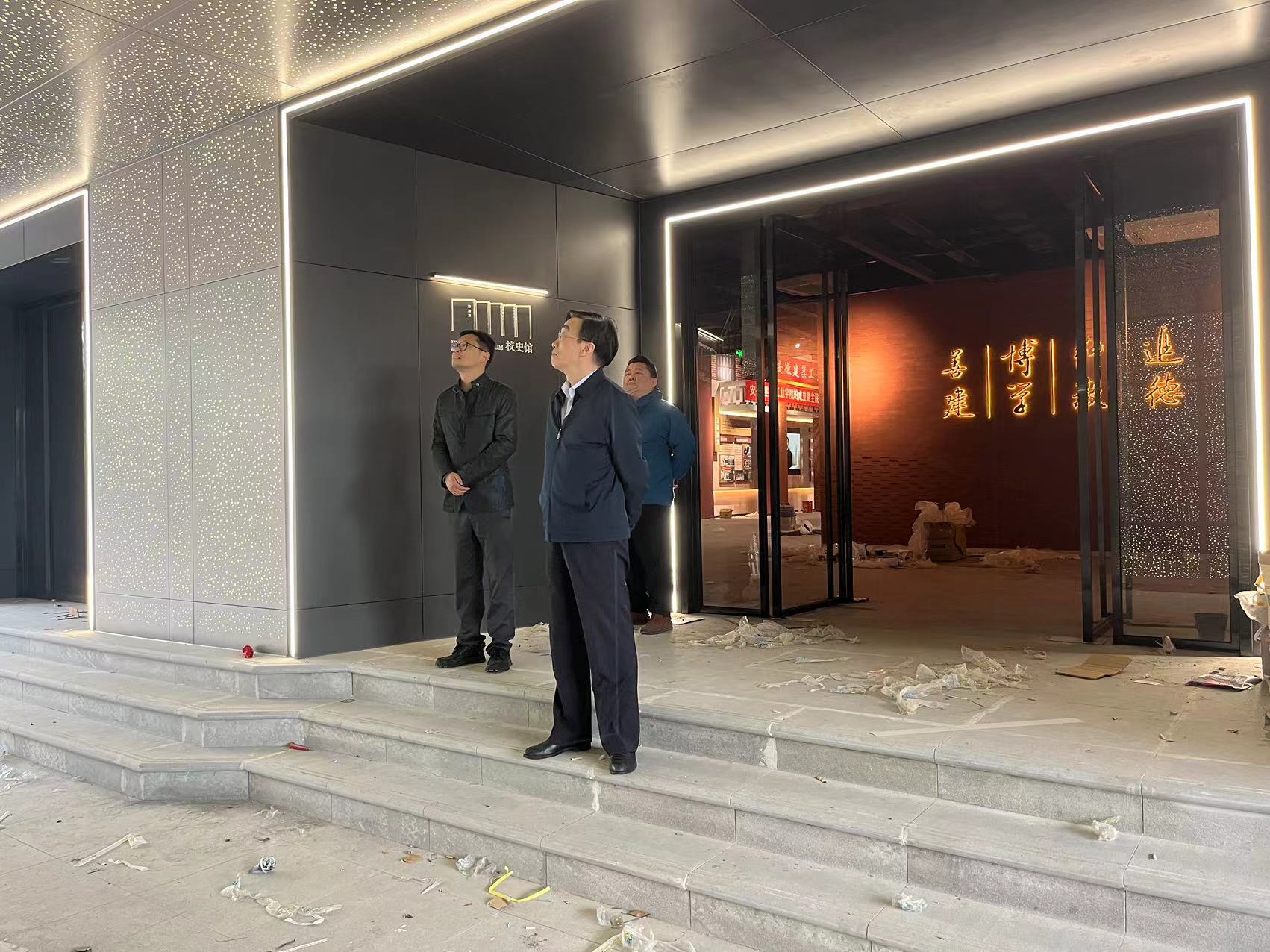 本网讯 4月25日上午,校党委书记孙道胜在国资处、合肥浦发建设集团有限公司管理人员陪同下,到南校区校史馆实地检查校史馆工程项目的建设与布展情况。