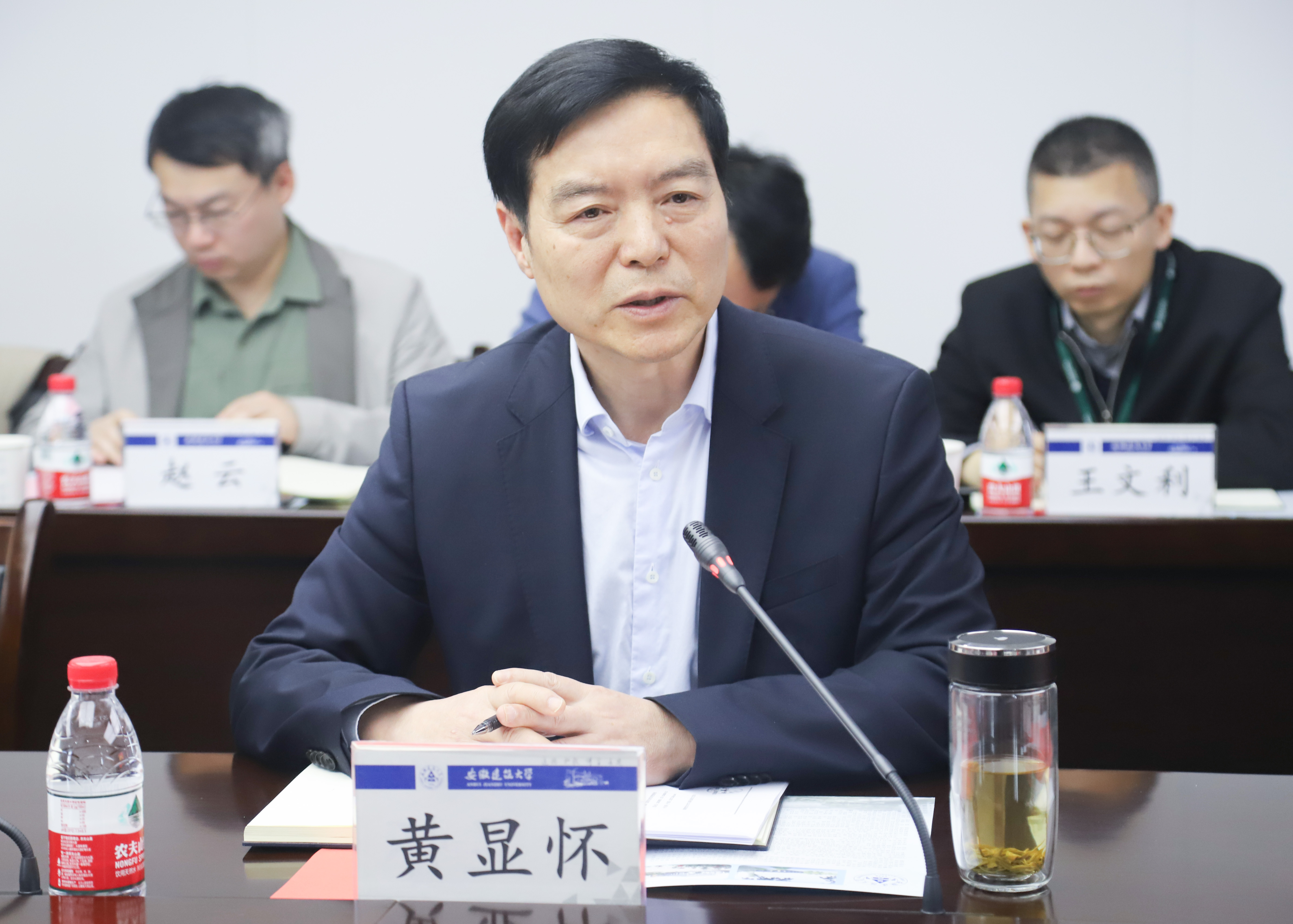 黄显怀对石连海一行的来访表示热烈欢迎,他简要介绍了学校发展历史沿革、办学特色、优势学科,以及近年来在学科建设、博士单位建设、高层次人才引进等方面取得的成绩。他表示,在新时代新征程上,希望与考察团携手在办学实践中不断探索高质量发展的新路径,在基础人才培养、科技创新中将市场机制的优势与中国特色社会主义大学的制度优势更好地结合起来,切实为高质量发展提供基础性、战略性支撑。