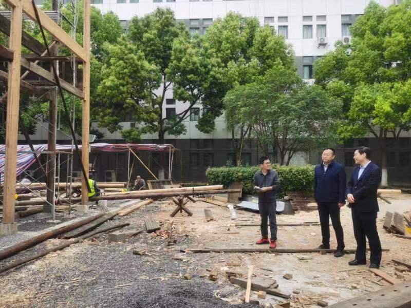 本网讯 为确保校庆期间各项活动平稳、有序展开,4月28日下午,校党委副书记、校长黄显怀到徽派博物馆、光启堂项目工地以及风雨操场等校庆主要场所进行了实地察看,国资处、保卫处、后勤集团相关负责人陪同。