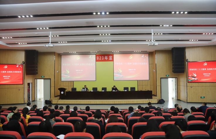 本网讯 为改进学校党政机关工作作风建设,提高工作效能,结合学习贯彻习近平新时代中国特色社会主义思想主题教育,近日,机关第一、二党委在实验综合楼二楼报告厅召开了机关效能建设辅导报告会。省直效能办二级巡视员王传所应邀来校作题为“贯彻党的二十大精神 加强机关效能建设”辅导报告。机关第一党委全体党员干部、机关第二党委科级以上干部200余人参加报告会,报告会由校党委常委、副校长张亚新主持。