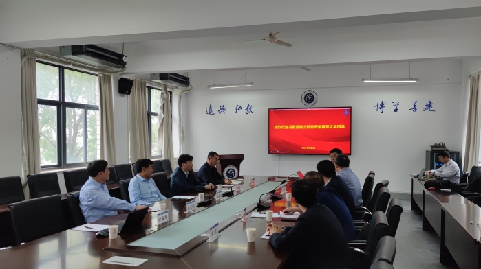 在学校65周年校庆之际,5月2日下午,东北大学党委副书记、校长冯夏庭院士应邀来校指导科研平台与学科建设工作,校党委书记孙道胜,校党委副书记、校长黄显怀,校党委常委、副校长蔡国军及科技处、土木学院、环能学院、材化学院等部门相关人员参加座谈会。