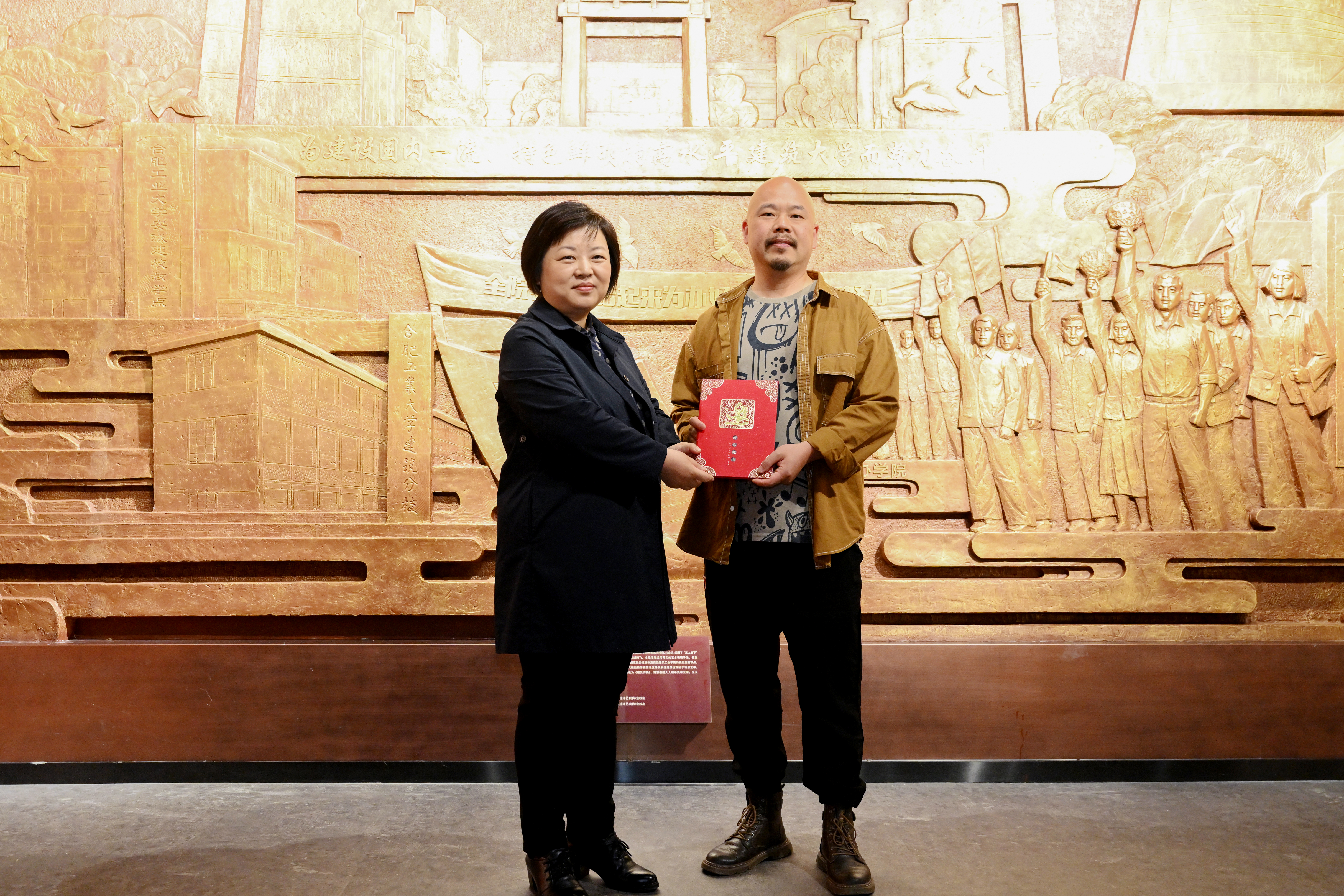 揭牌后,领导嘉宾步入馆内大厅,举行校史馆浮雕捐赠仪式,并由校党委常委、副校长李早向艺术学院何文宏老师颁发收藏证书。这幅浮雕取名为《绍光济美》,由我校艺术学院何文宏老师设计完成,寓意着建大人继承先辈光荣,光大前人事业。浮雕整体运用写实的表现手法,学校三个重要的时间节点、四代校徽和南北校区的多个代表性建筑穿插于背景之中,生动展现了ku游官方的发展历程。