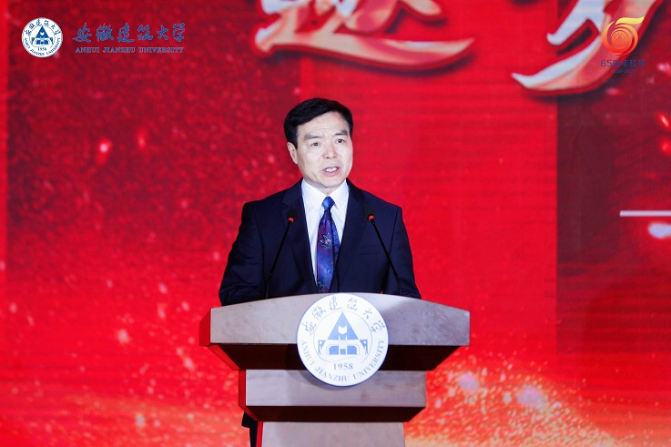 晚会上,学校党委副书记、校长黄显怀教授送上寄语,向长期以来关心支持学校发展的全校师生员工、离退休老同志、海内外校友和各界人士表示衷心的感谢,祝愿建大的明天更加美好。他指出,“进德、弘毅、博学、善建”的校训精神是一代代建大师生留下的宝贵精神财富,回顾建大的65年,学校始终不忘初心、牢记使命,不负党的嘱托,为国家努力培养更多担当民族复兴大任的时代新人接续奋斗,在以中国式现代化全面推进中华民族伟大复兴的新征程中作出新的更大贡献!