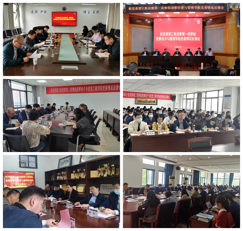 3月15-29日,校党委第三轮巡察第一、第二、第三巡察组分别对经济与管理学院、电子与信息工程学院、材料与化学工程学院开展了巡察。各巡察组坚持以习近平新时代中国特色社会主义思想为指导,深入贯彻党的二十大精神,树牢“四个意识”、坚定“四个自信”、做到“两个维护”,认真贯彻中央巡察工作方针,坚守政治巡察职能定位,按照政治巡察“四个落实”监督重点,紧扣被巡察单位党委的政治功能、核心职能,紧盯领导班子和“关键少数”,对被巡察单位领导班子和领导干部履职尽责情况开展全面监督检查。4月17日,校巡察工作领导小组听取了巡察情况汇报,5月18日,校党委常委会议听取并审议了巡察情况报告。