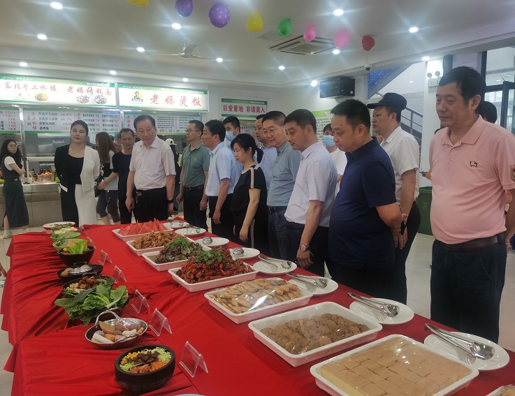 本网讯 为持续营造喜庆的校庆氛围,加强校园饮食文化建设,丰富学生校园生活,促进食堂饮食服务质量提升。后勤服务集团组织举办校庆美食节暨“校园十大最受欢迎菜肴”评选活动。5月29日,校党委常委、副校长蔡新立亲临美食节活动现场,带队检查各食堂活动举办情况和指导十大美食评选工作。
