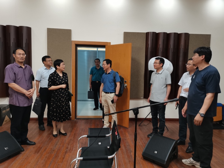 安徽欣诚广播电视科技有限公司总经理杨会全对王玉兰一行的到来表示热烈欢迎,公司副总经理胡新东带领大家参观了公司的录音棚、艺术欣赏室、生产、物流仓储及办公场所,并对企业的发展状况、经营特色、机构设置、资质资信及部分项目案例情况进行了说明。