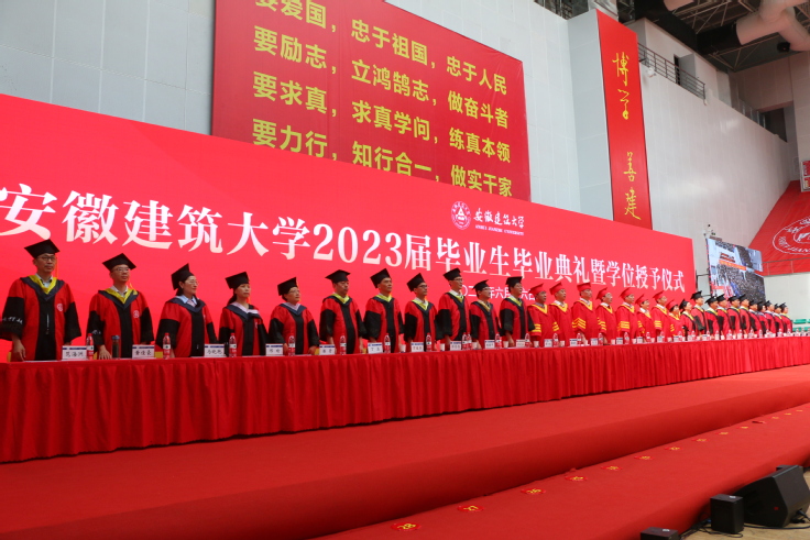 毕业典礼在雄壮的国歌声中拉开帷幕。典礼上,校党委书记孙道胜宣读了《关于表彰2023年安徽省及学校优秀毕业生的决定》,并向全体优秀毕业们致以祝贺;随后宣读了《ku游官方关于2023年上半年毕业生学位授予的决定》,经校学位评定委员会会议审议,同意授予4078名本科生学士学位、689名硕士毕业生硕士学位。