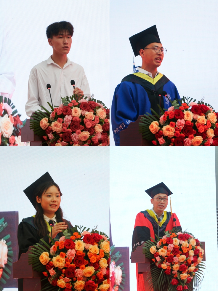 最后,黄显怀对即将毕业的学子提出了三点希望:希望你们在努力奔跑时不要忘了初心,“功名终好在,且莫负初心”;希望你们在全力以赴时不要忘了思考,“君子博学而日参省乎己,则知明而行无过矣”;希望你们在向上生长时不要忘了沉淀,“虚心竹有低头叶,傲骨梅无仰面花”。